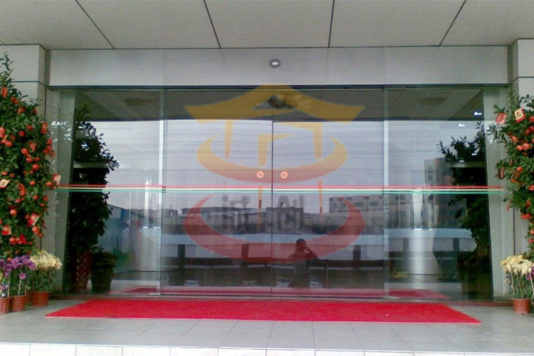 本發(fā)明采用一扇門扇的存放空間封閉在兩扇門中的結構,極大限度地利用有限的空間,開口寬度可達標準滑動門的1.3 - 1.5倍,適用于人流大的地方或較大物體的進出開口,如汽車展廳、展覽館、會議中心等。